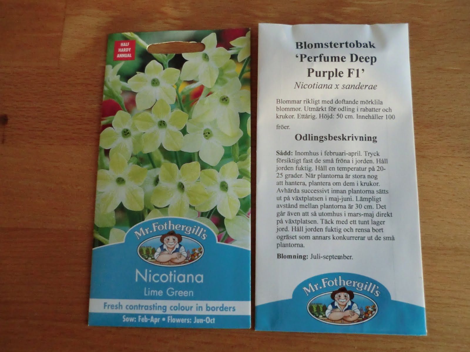 Tobaksplantorna är ståtliga och pryder sin plats i bakgrunden av rabatter och ger höjd i krukor.Förra året hade jag dem endast i limefärg, men i år ska jag testa en lila ton också.